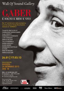 A dieci anni dalla sua scomparsa, con la mostra Gaber. E sogno e rido e vivo Wall Of Sound Gallery vuole rendere omaggio ad una vicenda umana, artistica e intellettuale tra le più vitali. Lo fa presentandone per la prima volta le fotografie più significative e iconiche, tratte dagli archivi della Fondazione Giorgio Gaber, Studio Giampaolo Begotti, Gianmarco Chieregato, Luigi Ciminaghi, Angelo Deligio, Tullio Farabola, Gianni Greguoli, Guido Harari, Mondadori Portfolio, Olycom, Rino Petrosino ed Enrica Scalfari. Immagini anche rese per la prima volta disponibili in edizione Fine Art al pubblico dei collezionisti.